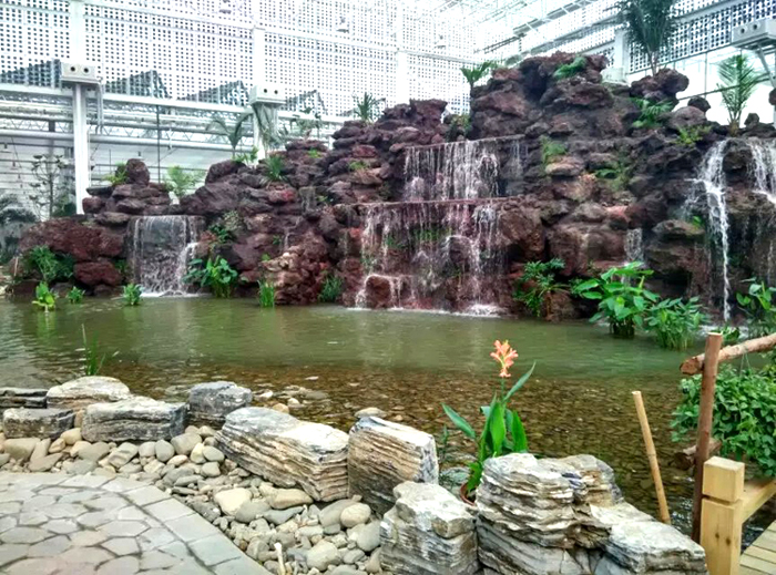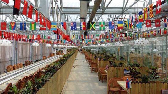为打造北方“小南国”,营造南方清新自然的环境,园区还规划设计了南方水乡风情的“水竹轩”茶室、豢养孔雀的“孔雀长廊”、椰壳开放式造型的餐饮区及形态各异的“造型榕树区”、琼岛风情的“吊脚楼”等。
