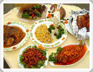 呼伦湖产的鲤鱼、鲫鱼、白鱼、红尾鱼等,肉质肥美,营养丰富。用呼伦湖产的鲜鱼和湖虾,可烹制鱼菜120多种,称为“全鱼宴”。鱼菜不但营养丰富,而且鲜嫩味美,百吃不厌。全鱼宴有12、14、20、24道菜一桌的,甚至有上百道菜一桌的。主要名贵鱼菜有鲤鱼跳龙门 二龙戏珠、鲤鱼三献、家常熬鲫鱼、梅花鲤鱼、油浸鲤鱼、鲤鱼甩子、松鼠鲤鱼、芙蓉荷花鲤鱼、湖水煮鱼、清蒸银边鱼、葡萄鱼、葱花鲤鱼、金狮鲤鱼、普酥鱼、蕃茄鱼片、鸳鸯鱼卷、荷包鲤鱼、煎焖白鱼、拌生虾、拌生鱼片等。