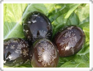 茶纹松花蛋,又名皮蛋,是白洋淀名特产品之一。蛋源为放养鸭子所产之蛋,采用传统工艺加新的科学配方制作。白洋淀茶纹松花蛋主要特点为色泽鲜亮,味道鲜美,茶纹清晰。切开后,松花呈墨绿、黑、浅褐、深褐四圈颜色。可做凉拌、豆腐松花、松花粥等菜肴。